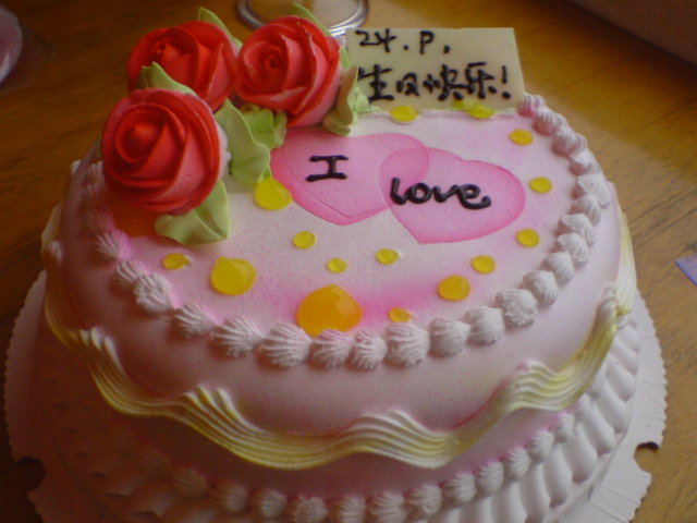 這邊的水果蛋糕都很土,於是我們就只能定了史上最土的慶生蛋糕了。